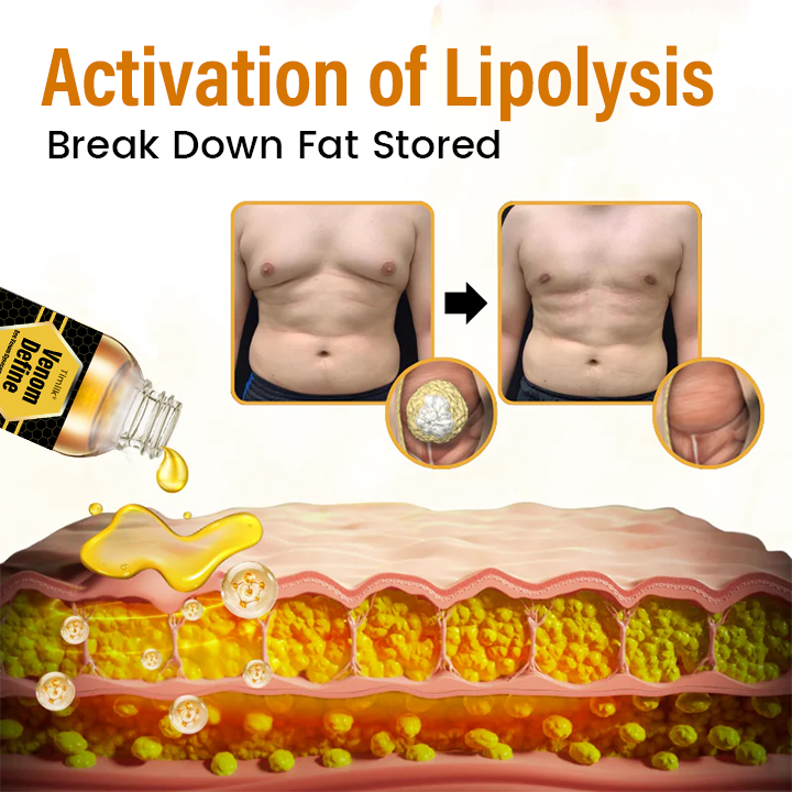 Timilk® VenomDefine Bee Venom Oil contains a powerful blend of active ingredients, with one of the core components being a natural bee venom extract. Its key compound, Melittin, activates the body’s lipolysis mechanism, penetrating deep into the subcutaneous fat layer to target localized fat deposits. This helps break down excess fat cells, effectively reducing chest fat accumulation and glandular enlargement in men.